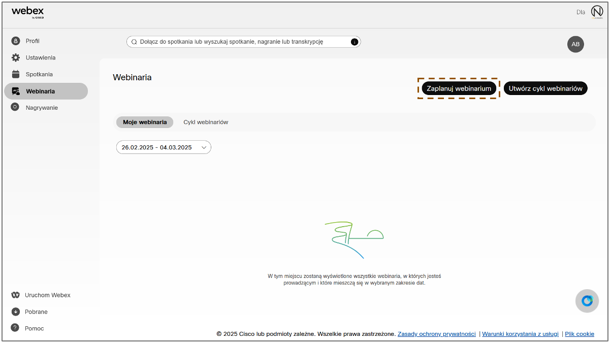 Następnie klikamy na przycisk Zaplanuj webinarium.